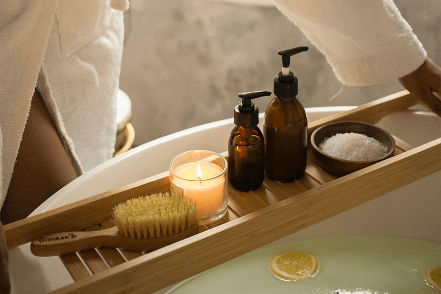 The bath will leave you with supple and moisturised skin. It can be a soothing part of your self-care routine. Chamomile and Eucalyptus oils are some of the best essential oils you can use in a bath.
